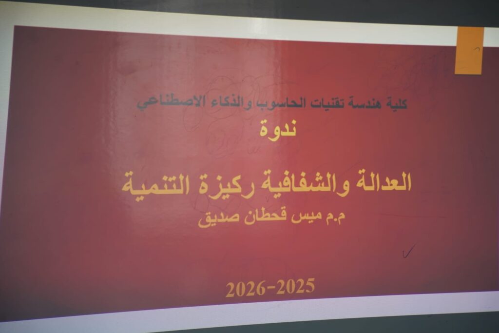 الكلية التقنية الهندسية للحاسوب والذكاء الاصطناعي تنظّم ندوة بعنوان «العدالة والشفافية ركيزة التنمية»